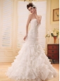 Home >  Wedding Dresses >  Elegant Wedding Dresses > Ruffles Strapless Hand Made Flowers Organza Stylish Custom Made Wedding Dress For 2013