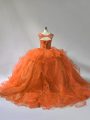 Rust Red Lace Up Ball Gown Prom Dress Ruffles Sleeveless Brush Train