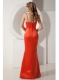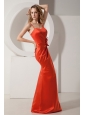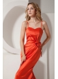 Home >  Prom Dresses >  Discount Prom Dresses > Rust Red Mermaid Spaghetti Straps Ruch and Hand Made Flower Prom Dress Floor-length Satin