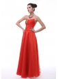 Home >  Prom Dresses >  Modest Prom Dresses > Rust Red Strapless Neckline For Prom With Embroidery Decorate Organza Prom Dress