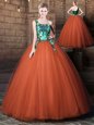 Rust Red Sweet 16 Quinceanera Dress Military Ball and Sweet 16 and Quinceanera and For with Pattern One Shoulder Sleeveless Lace Up
