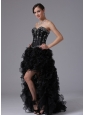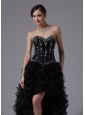 Sacramento California City Black High-low Beaded Bodice and Ruffles For Sweet Prom Dress Sweetheart