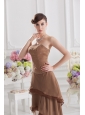 Home >  Prom Dresses >  Popular Prom Dresses > Saddle Brown A-line Strapless Chiffon High-low Prom Dress with Beading