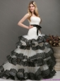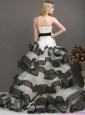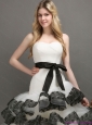 Sash and Lace Strapless 2015 New Wedding Dresses in White and Black