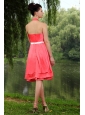 Home >  Special Occasion Dresses >  Dama Dresses for Quinceanera > Sash Halter Empire Coral Red Taffeta Dama Dress