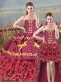 Satin and Organza Sleeveless Quinceanera Dresses Brush Train and Embroidery and Ruffles
