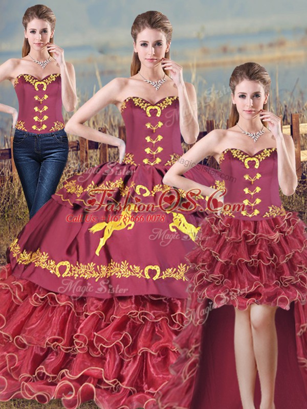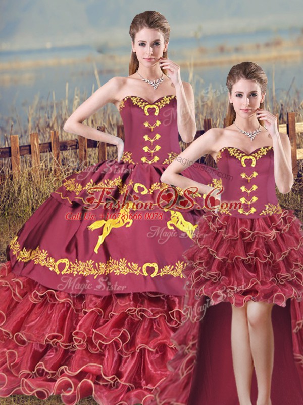 Home >  Quinceanera Dresses >  Detachable Quinceanera Skirts > Satin and Organza Sleeveless Quinceanera Dresses Brush Train and Embroidery and Ruffles