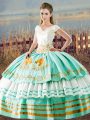 Satin and Organza V-neck Sleeveless Lace Up Embroidery and Ruffled Layers Sweet 16 Quinceanera Dress in Apple Green