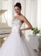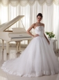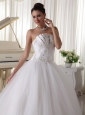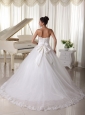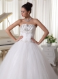 Satin and Tulle Strapless Beaded Decorate Up Bodice Wedding Dress Bridal Gown With Bowknot Back Sweep Train