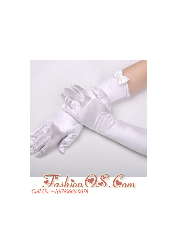 Satin Elbow Length Fingertips Bridal Gloves With Bow