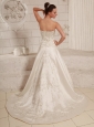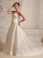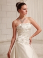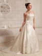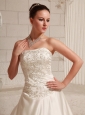 Satin Embroidery Over Bodice A-line Wedding Dress With Court Train