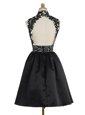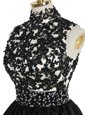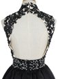 Satin High-neck Sleeveless Zipper Beading and Appliques Mother Of The Bride Dress in Black