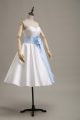 Satin Long Sleeves Knee Length Prom Party Dress and Bowknot