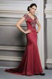Satin Short Sleeves Mother Of The Bride Dress Court Train and Appliques