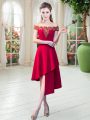 Satin Sleeveless Asymmetrical Prom Party Dress and Appliques