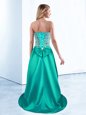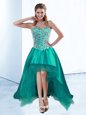 Satin Sleeveless High Low Prom Dress and Beading and Bowknot