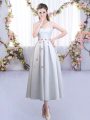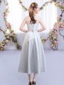 Satin Sleeveless Tea Length Bridesmaids Dress and Appliques