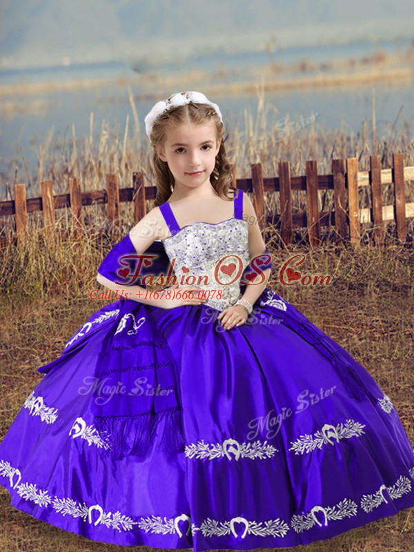 Satin Straps Sleeveless Lace Up Beading and Embroidery Pageant Dress Toddler in Purple