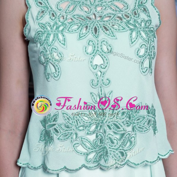 Scalloped Chiffon Sleeveless Floor Length and Embroidery