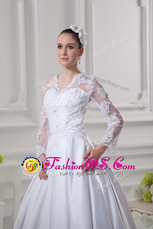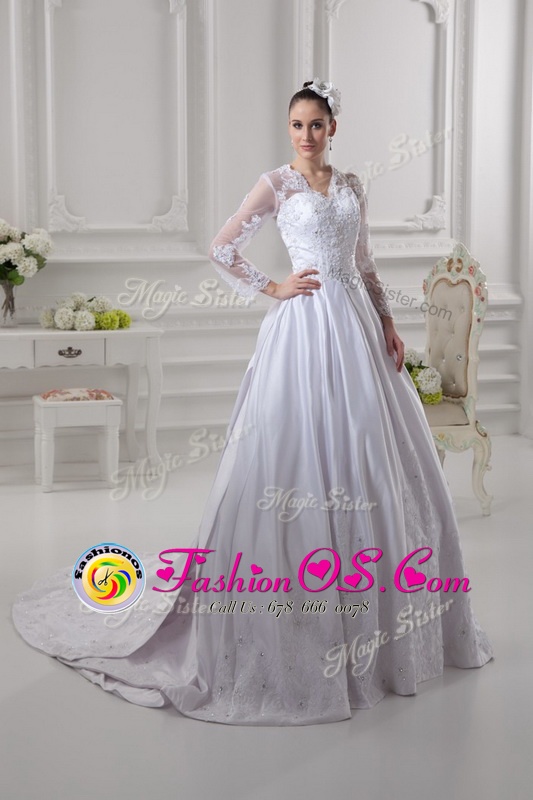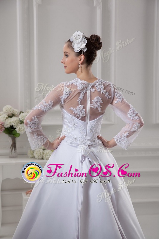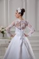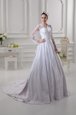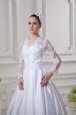 Scalloped Long Sleeves Court Train Zipper Lace Wedding Dress