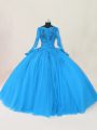 Scalloped Long Sleeves Tulle Sweet 16 Dresses Lace and Appliques Zipper