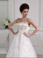 Home >  Wedding Dresses >  Plus Size Wedding Dresses > Scalloped Sleeveless Chiffon Wedding Gown Beading and Appliques Brush Train Side Zipper