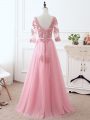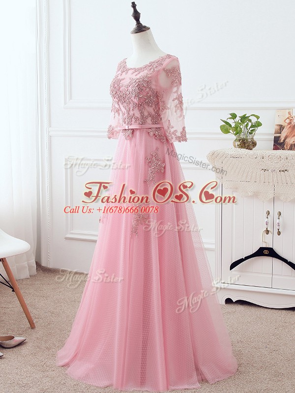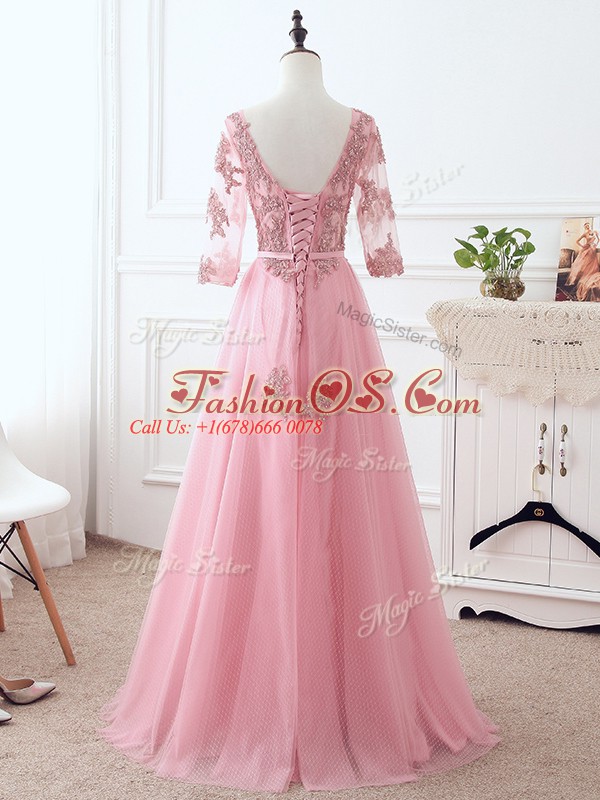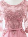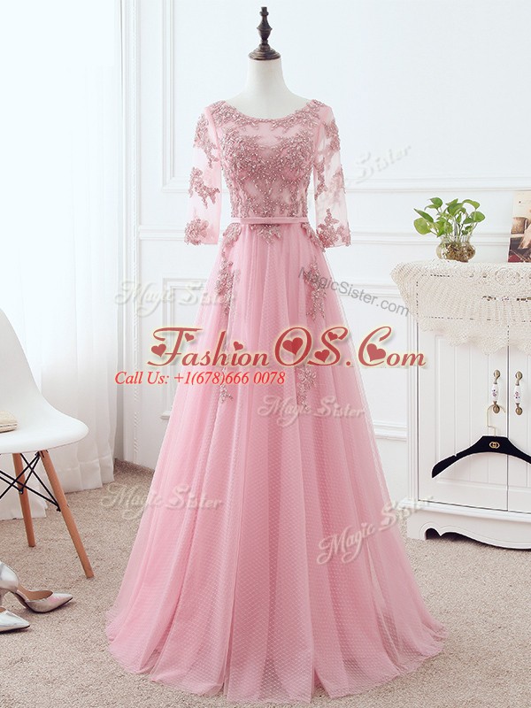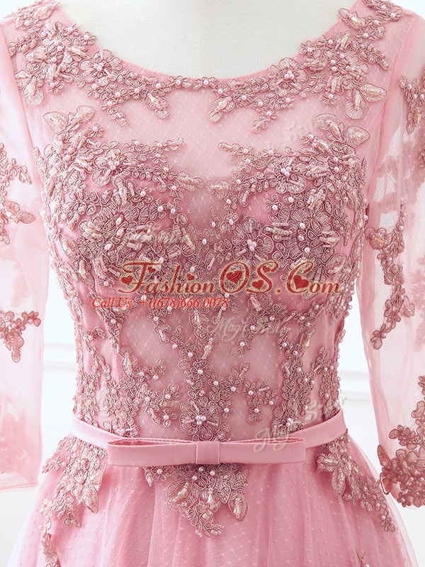 Scoop 3 4 Length Sleeve Tulle Mother Of The Bride Dress Lace and Appliques and Belt Lace Up