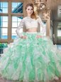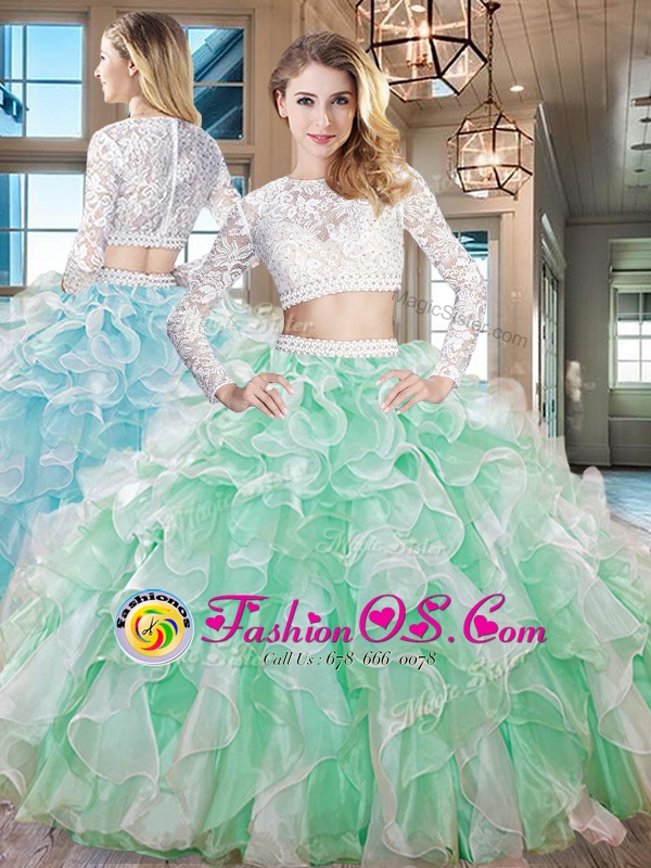 Scoop Apple Green Long Sleeves Floor Length Beading and Lace and Ruffles Zipper Sweet 16 Dress