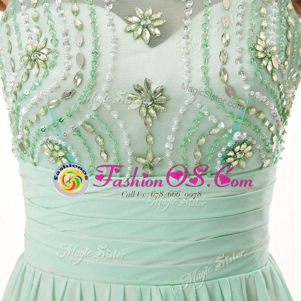 Home >  Prom Dresses >  Perfect Prom Dresses > Scoop Apple Green Sleeveless Floor Length Beading and Bowknot Zipper Dress for Prom