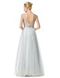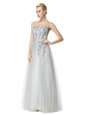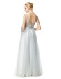Scoop Appliques Prom Dresses Silver Zipper Sleeveless Floor Length