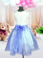 Scoop Baby Blue Sleeveless Hand Made Flower Knee Length Pageant Gowns For Girls