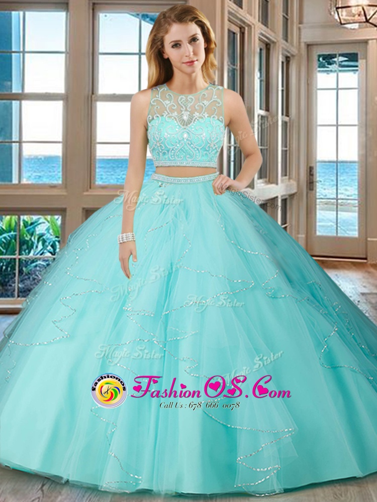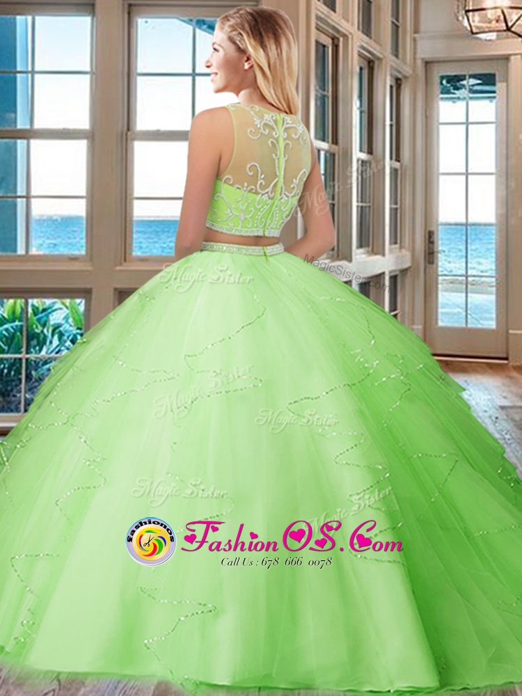Scoop Beading and Ruffles Sweet 16 Quinceanera Dress Baby Pink Zipper Sleeveless Floor Length