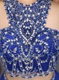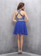 Scoop Beading Dress for Prom Royal Blue Criss Cross Sleeveless Knee Length