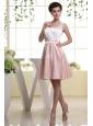 Scoop Bridesmaid Dress With White and Baby Pink Mini-length