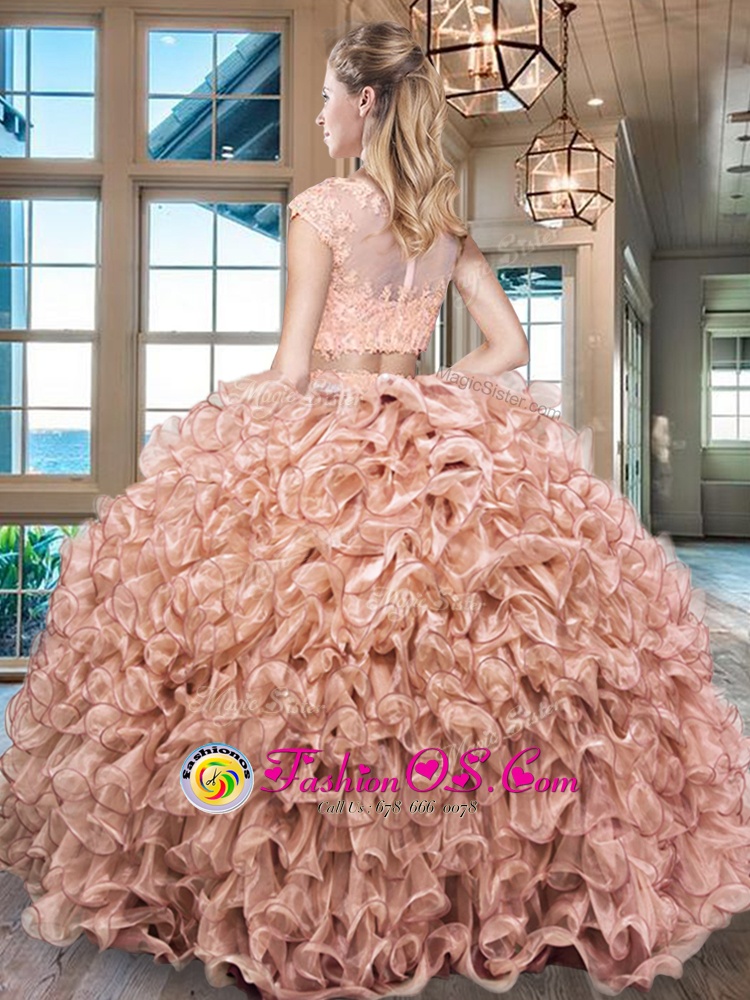 Scoop Cap Sleeves Beading and Appliques and Ruffles Zipper Vestidos de Quinceanera