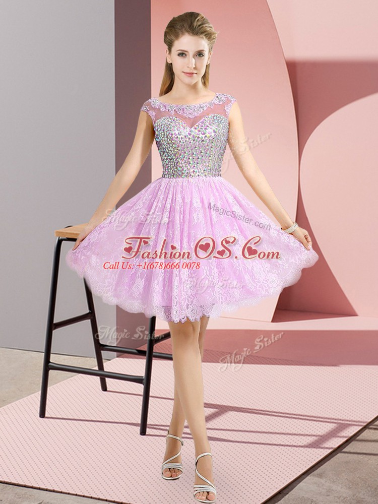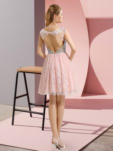 Scoop Cap Sleeves Lace Dress for Prom Beading Backless
