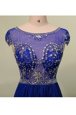Home >  Prom Dresses >  Perfect Prom Dresses > Scoop Cap Sleeves Prom Dresses With Train Beading and Appliques Blue Chiffon