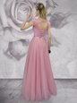 Home >  Prom Dresses >  Elegant Prom Dresses > Scoop Cap Sleeves Tulle Prom Dresses Lace and Ruching and Bowknot Lace Up