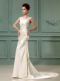 Scoop Column Champagne Taffeta Brush Wedding Dress