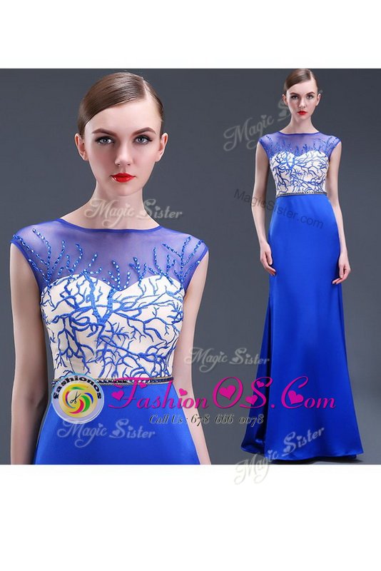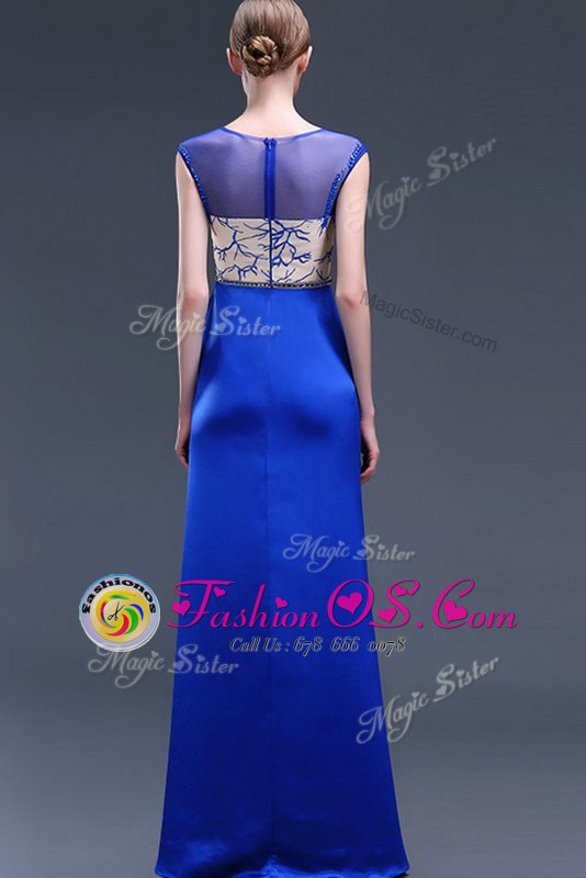 Scoop Floor Length Ball Gowns Sleeveless Royal Blue Prom Party Dress Zipper