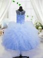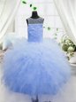 Home >  Special Occasion Dresses >  New Style Little Girl Pageant Dresses > Scoop Floor Length Zipper Little Girl Pageant Dress Baby Blue and In for Party and Wedding Party with Beading and Ruffles