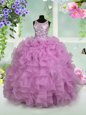 Home >  Special Occasion Dresses >  Little Girl Pageant Dresses > Scoop Floor Length Zipper Little Girl Pageant Gowns Lilac and In for Party and Wedding Party with Ruffles and Sequins