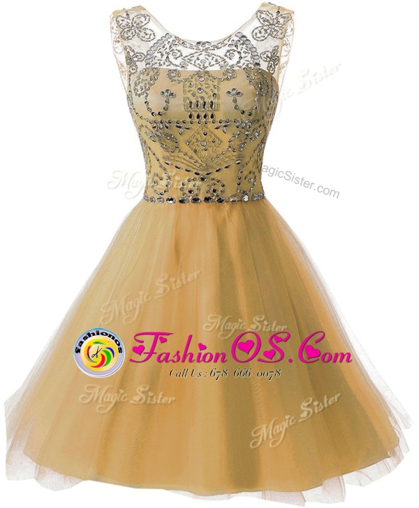 Home >  Prom Dresses >  Fashionable Prom Dresses > Scoop Gold Sleeveless Chiffon Zipper Prom Party Dress for Prom and Party