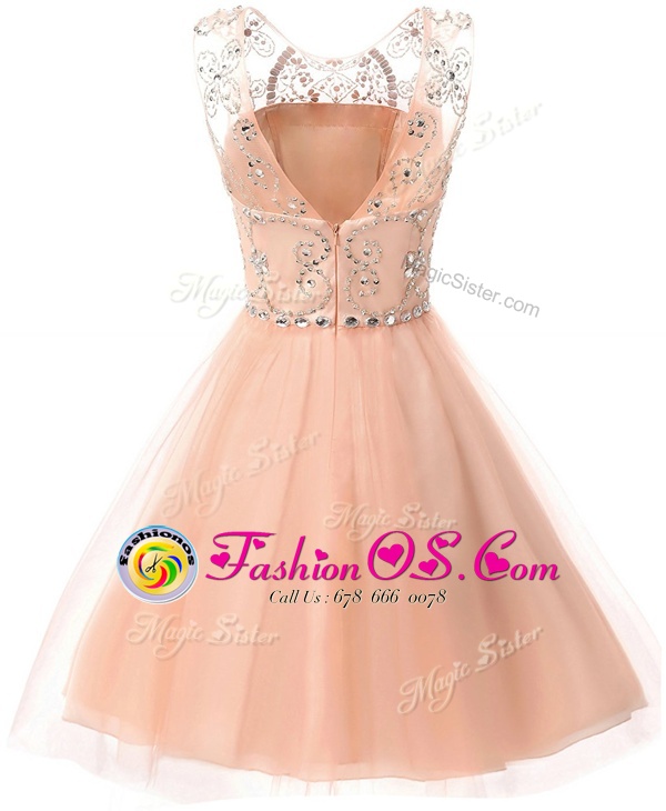 Scoop Gold Sleeveless Chiffon Zipper Prom Party Dress for Prom and Party