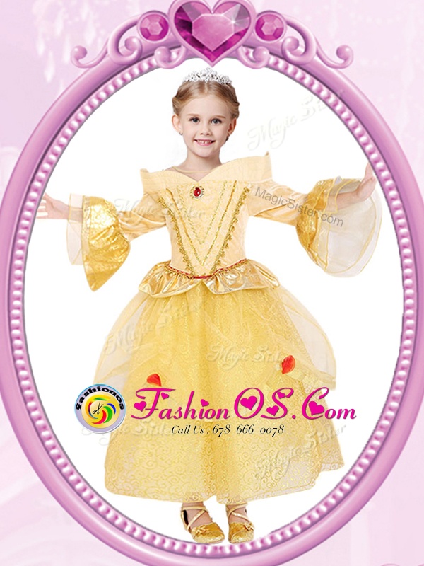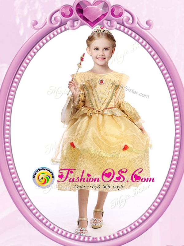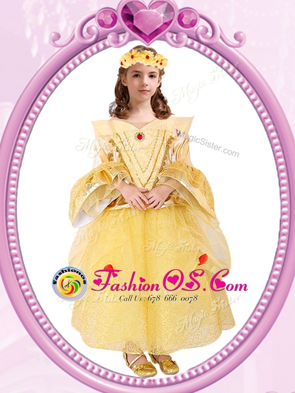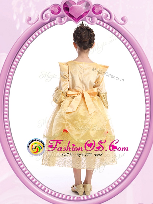 Home >  Special Occasion Dresses >  Cheap Flower Girl Dresses > Scoop Gold Zipper Flower Girl Dresses for Less Beading and Sequins Long Sleeves Ankle Length