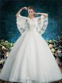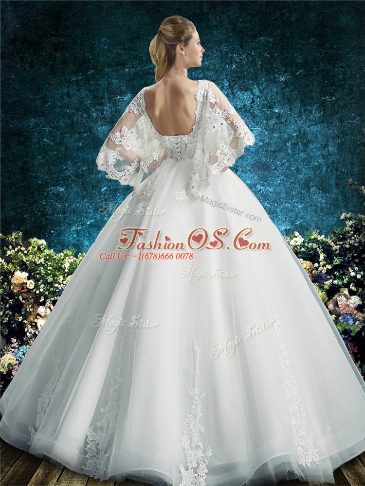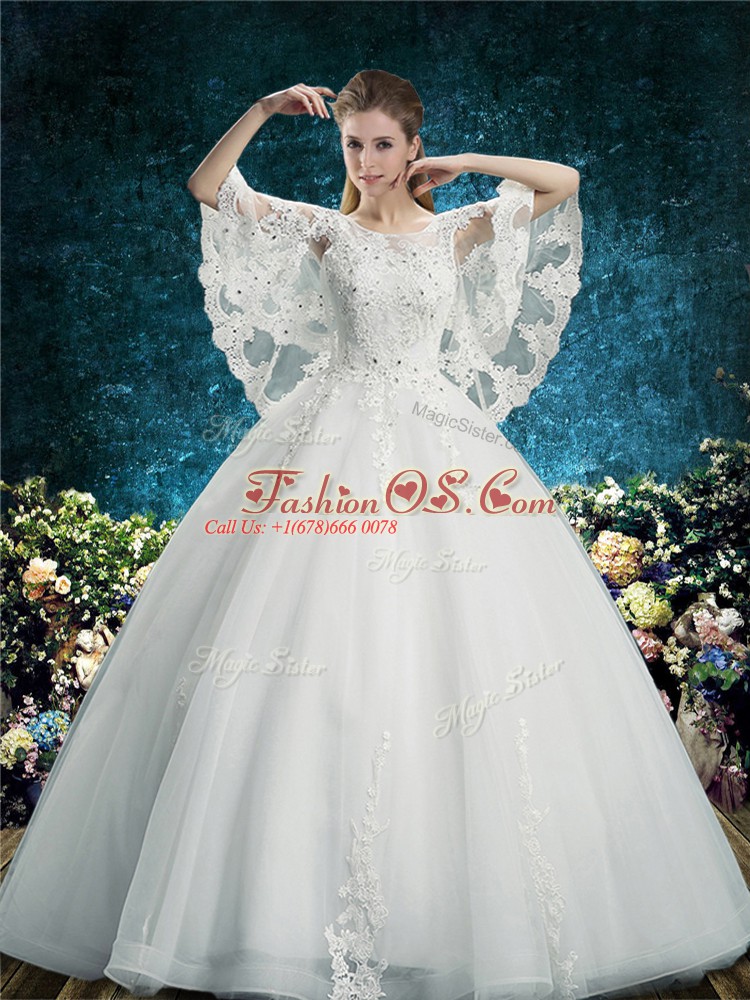 Scoop Half Sleeves Bridal Gown Floor Length Lace White Tulle