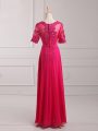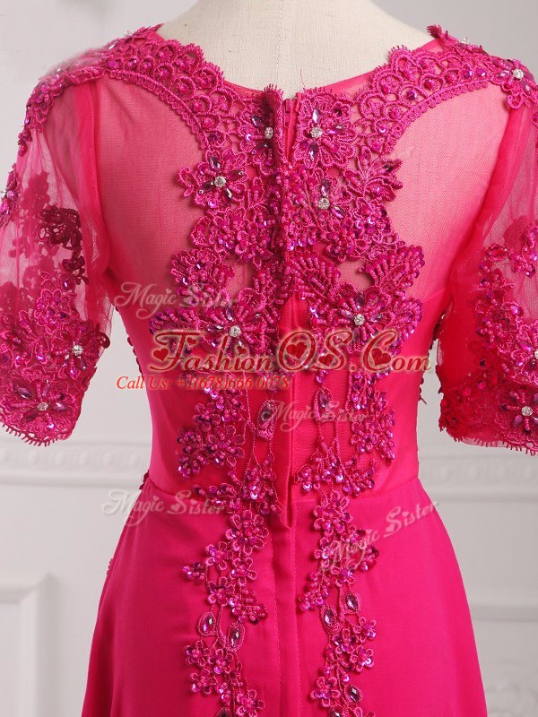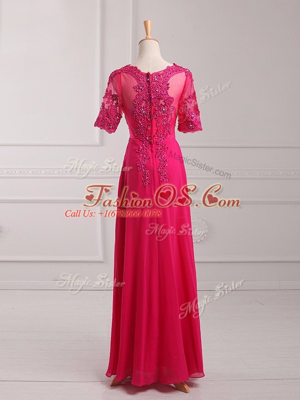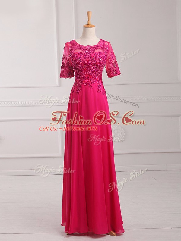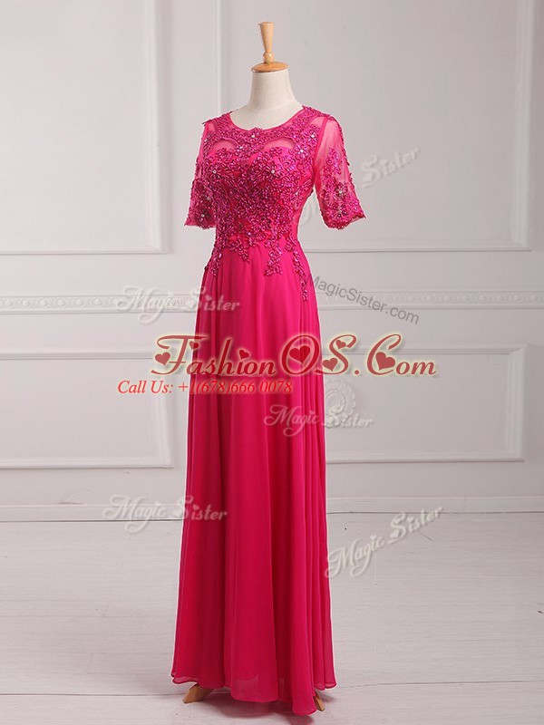Scoop Half Sleeves Chiffon Mother Of The Bride Dress Lace and Appliques Zipper
