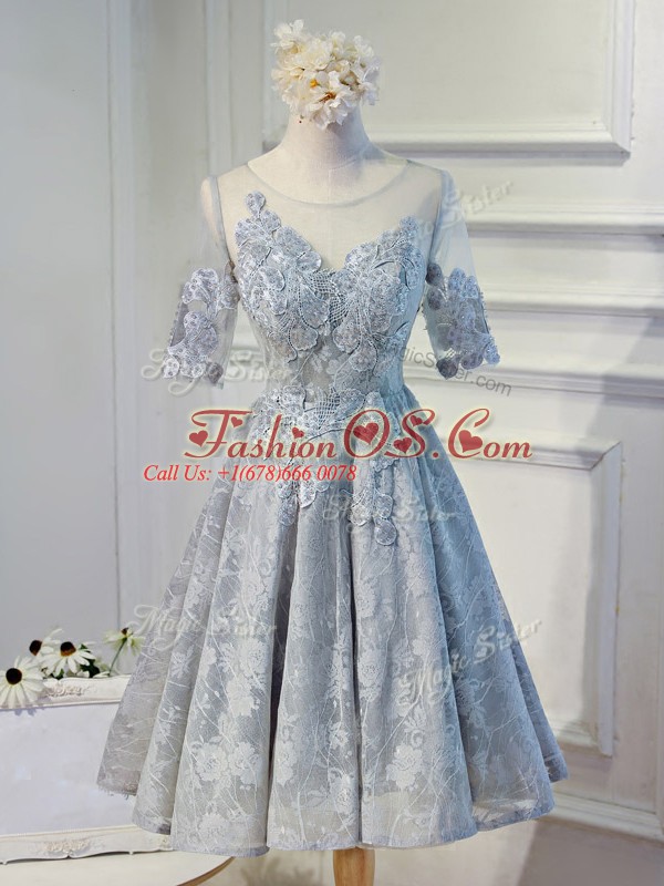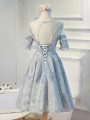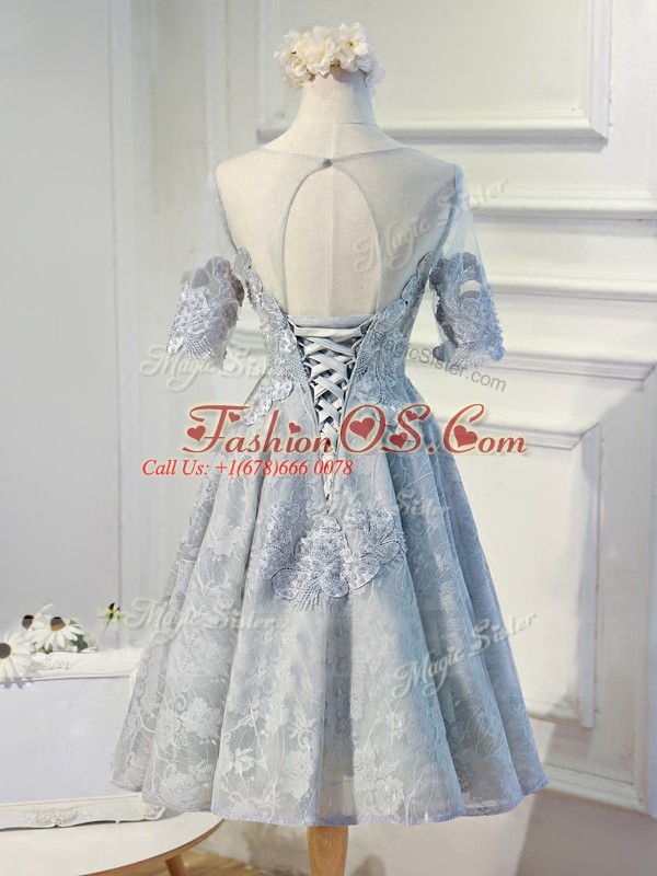 Scoop Half Sleeves Organza Lace and Appliques Lace Up