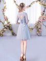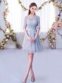 Scoop Half Sleeves Quinceanera Court of Honor Dress Mini Length Lace Grey Tulle