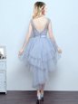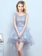 Scoop High Low Lace Up Quinceanera Court of Honor Dress Grey and In for Prom and Party and Wedding Party with Lace and Ruffles and Belt